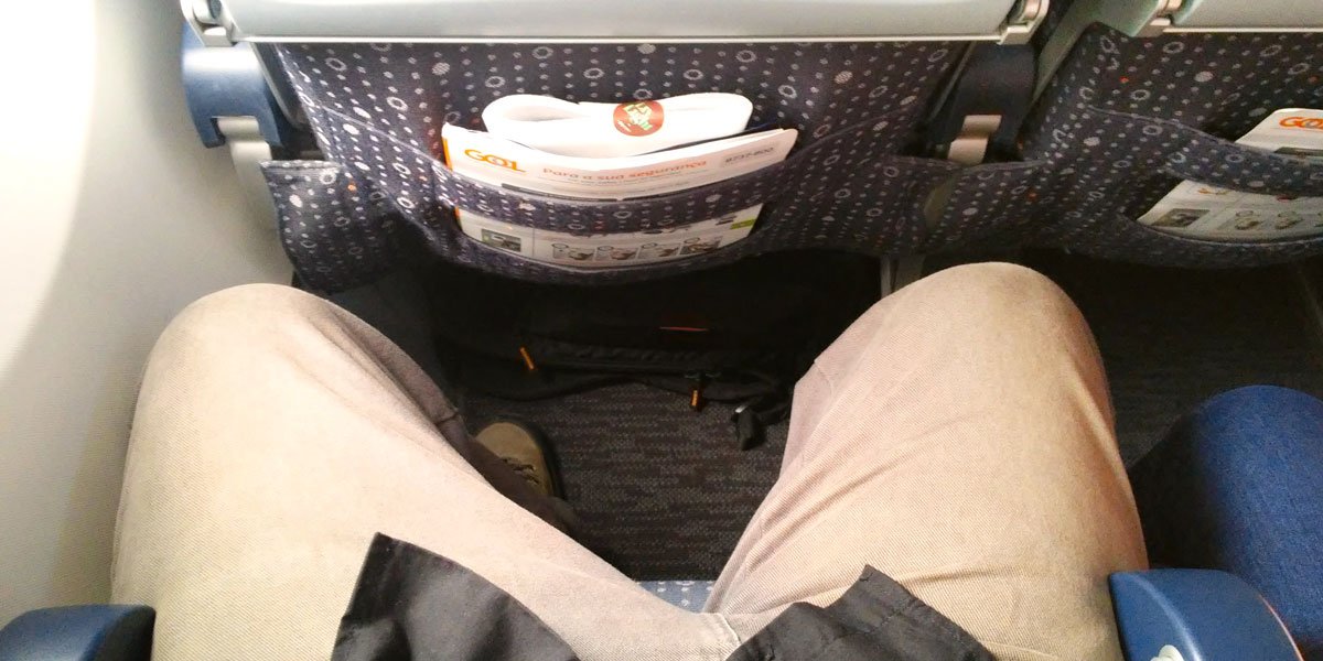 O voo 7660 da Gol é feito com Boeings 737-800, com fileiras de seis assentos e um único corredor central (veja o mapa de assentos aqui).Em termos de largura, o assento é um pouco apertado, mas tivemos a sorte de não ter ninguém sentado do nosso lado.
