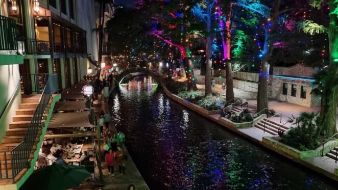 Uma das atrações mais famosas de San Antonio é a River Walk, uma charmosa área à beira do rio no centro da cidade.